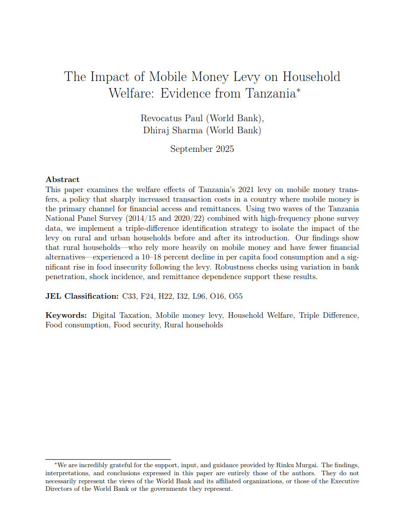 Reproducibility package for The Impact Of Mobile Money Levy On Household Welfare: Evidence From Tanzania